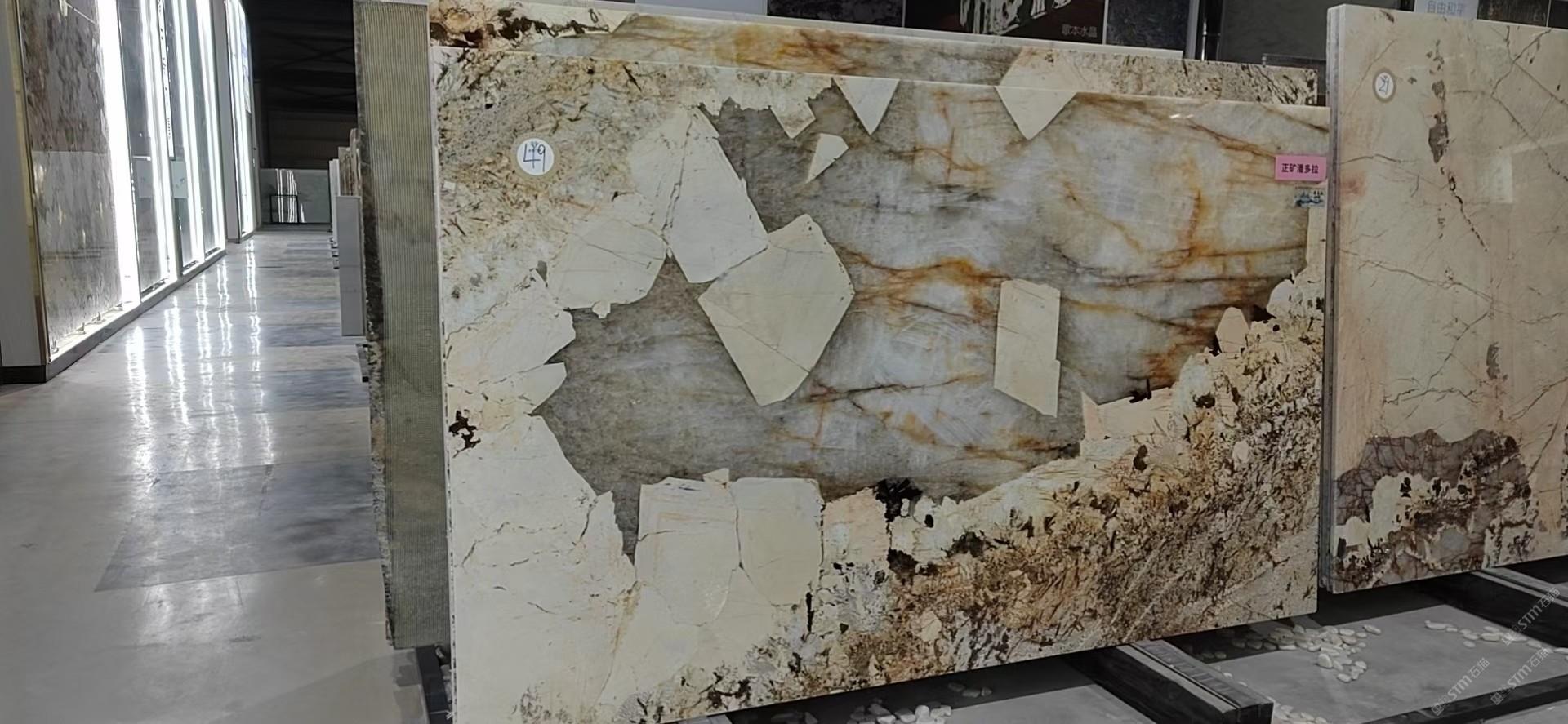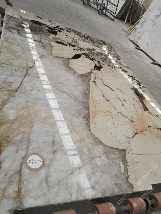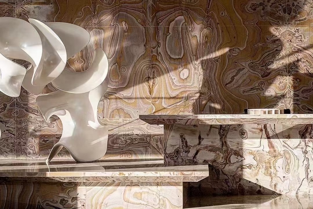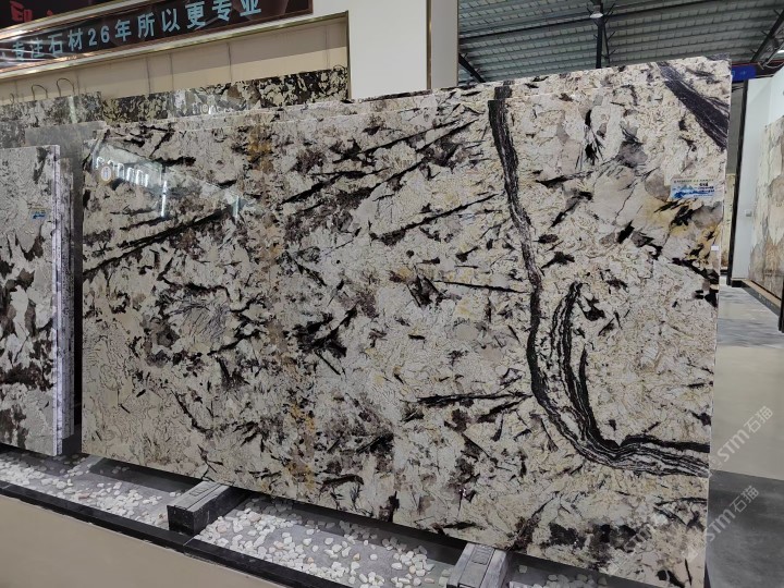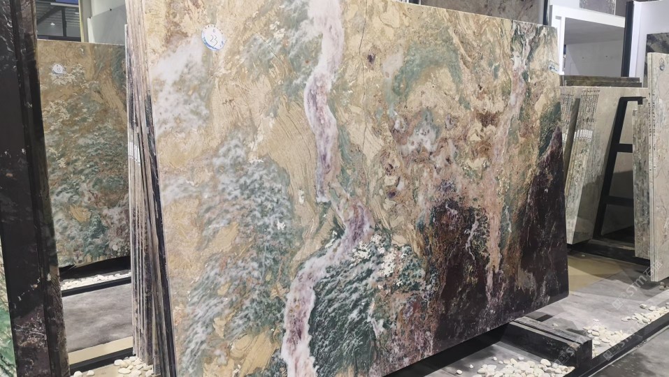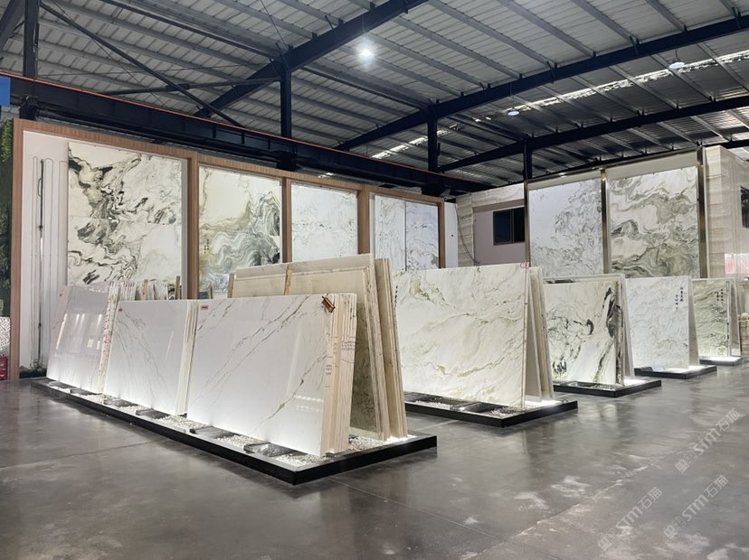 新景印象石畫館常年庫(kù)存玉石、奢石、山水畫,現(xiàn)貨大板近15萬(wàn)平方,品種齊全,庫(kù)存豐富,可滿足不同客戶群各個(gè)價(jià)位板面需求。為客戶提供了更全面的選擇空間。未來(lái),這里更將被打造成為華東地區(qū)天然背景石材選材中心。\