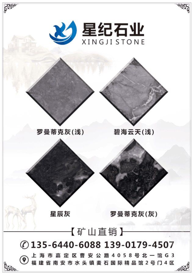 星紀(jì)石業(yè)專業(yè):龍馬礦星耀灰礦山直銷(xiāo),底色一致,紋理清晰,適合各種工裝及家裝,常年備貨荒料5000噸,大板10萬(wàn)方量大價(jià)優(yōu)。