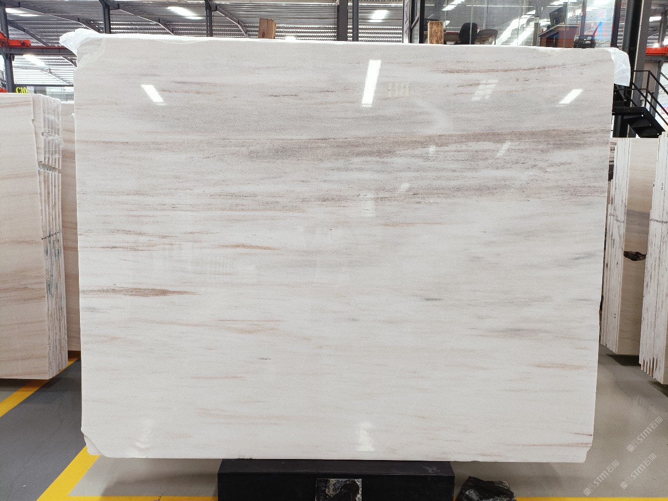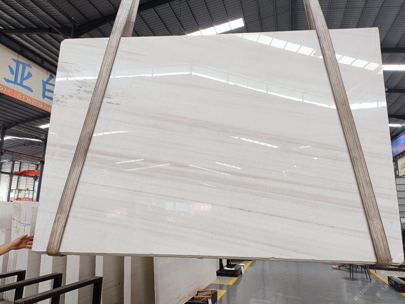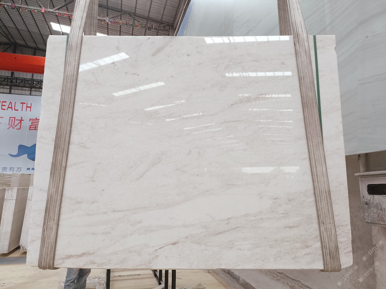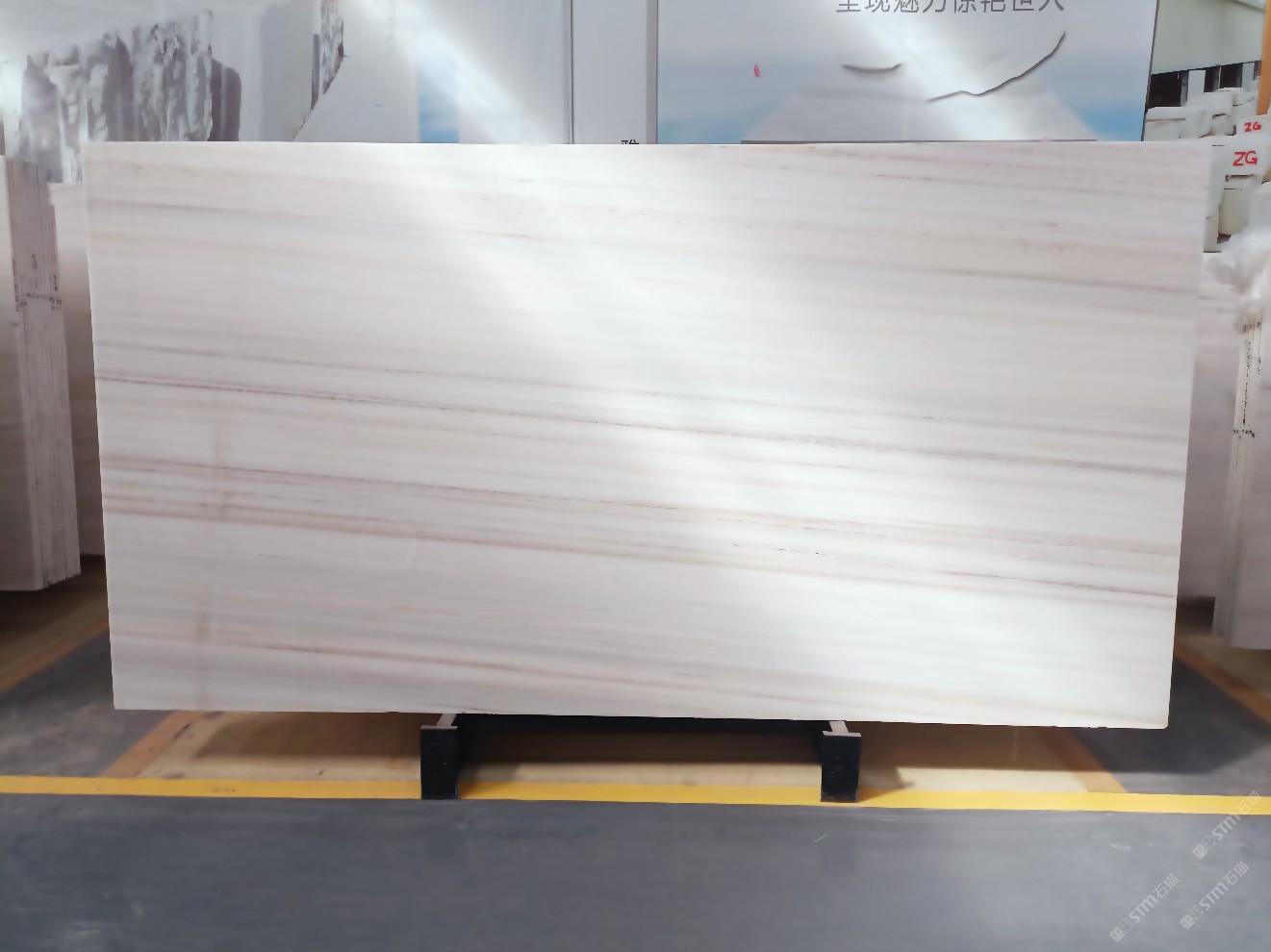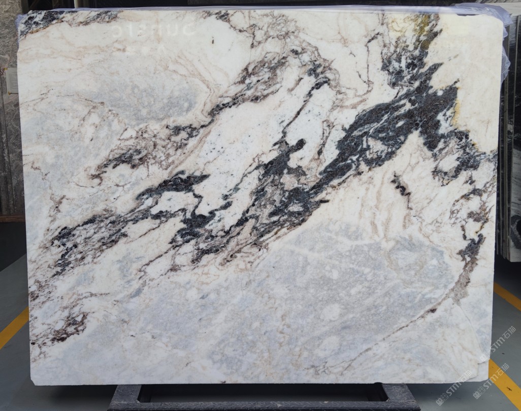 云浮站石材公司開發(fā)的歐亞白獨(dú)立礦山,專屬道路,礦口面積約 725 畝,證件齊全。今年礦口開采出直紋,亂紋優(yōu)質(zhì)大板材料,礦山采用單面墻平臺(tái)開采方式,10臺(tái)繩鋸、5臺(tái)鏟車、5臺(tái)勾機(jī)、一臺(tái) 30 噸叉車,共有職工40人,已有兩個(gè)開采平臺(tái)。礦山已開采多年,道路、設(shè)施都已成熟,現(xiàn)產(chǎn)能穩(wěn)定增長。品質(zhì)非常穩(wěn)定,一石兩面分別可以產(chǎn)出直紋和亂紋兩種紋路,材質(zhì)為細(xì)膩的玉質(zhì)品體。