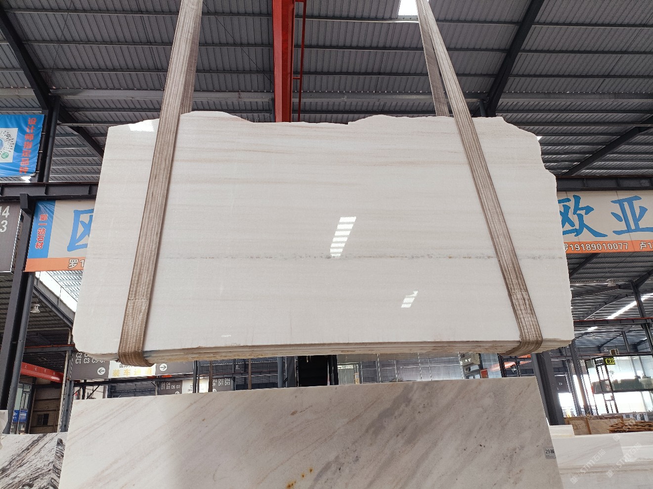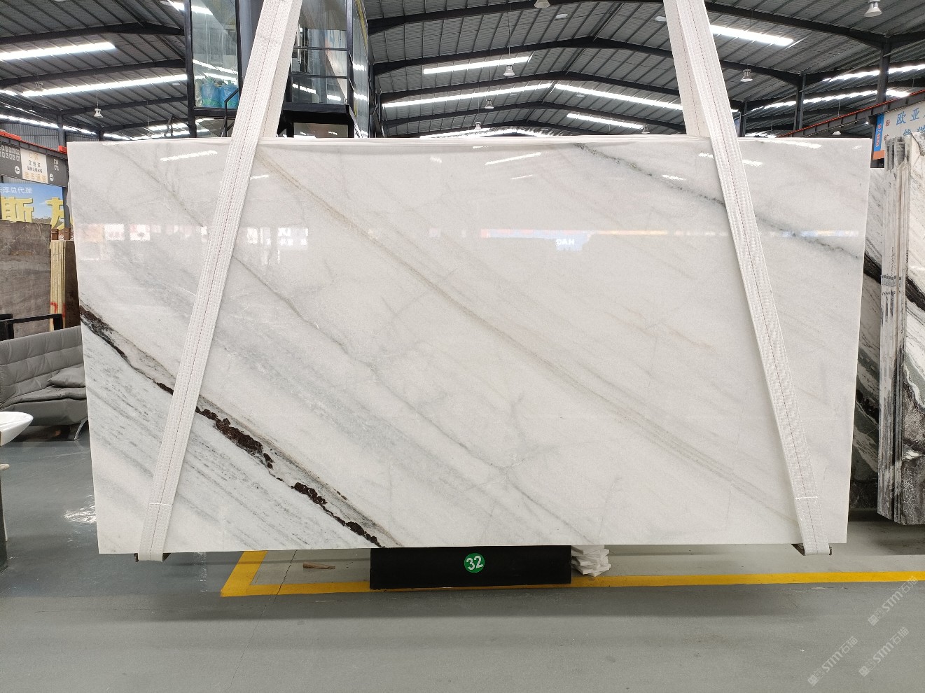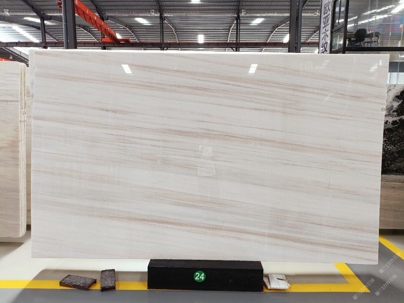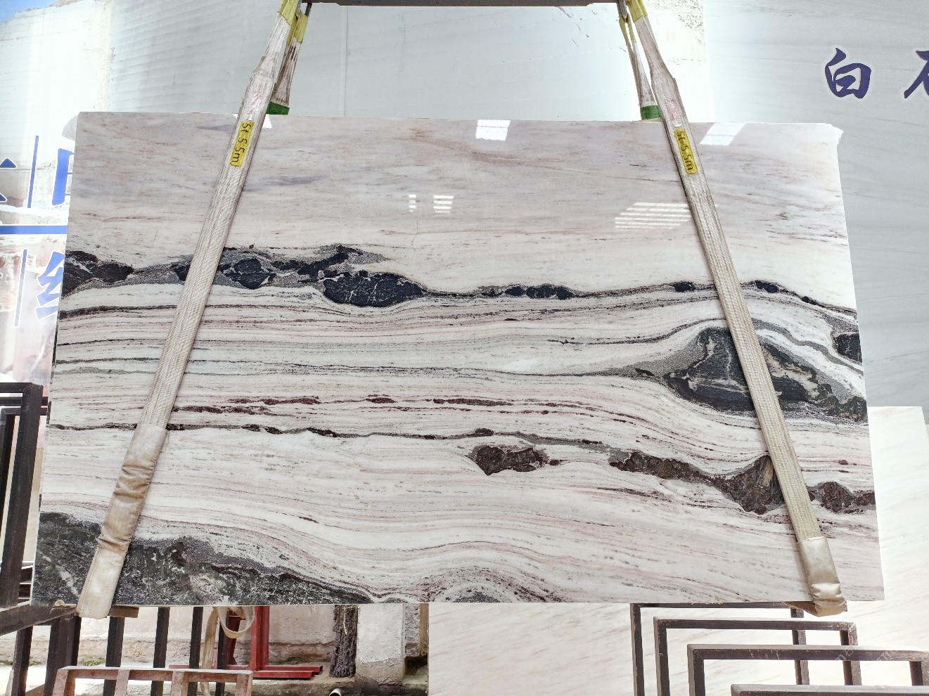 云浮站石材公司開發(fā)的歐亞白獨(dú)立礦山,專屬道路,礦口面積約 725 畝,證件齊全。今年礦口開采出直紋,亂紋優(yōu)質(zhì)大板材料,礦山采用單面墻平臺(tái)開采方式,10臺(tái)繩鋸、5臺(tái)鏟車、5臺(tái)勾機(jī)、一臺(tái) 30 噸叉車,共有職工40人,已有兩個(gè)開采平臺(tái)。礦山已開采多年,道路、設(shè)施都已成熟,現(xiàn)產(chǎn)能穩(wěn)定增長。品質(zhì)非常穩(wěn)定,一石兩面分別可以產(chǎn)出直紋和亂紋兩種紋路,材質(zhì)為細(xì)膩的玉質(zhì)品體。