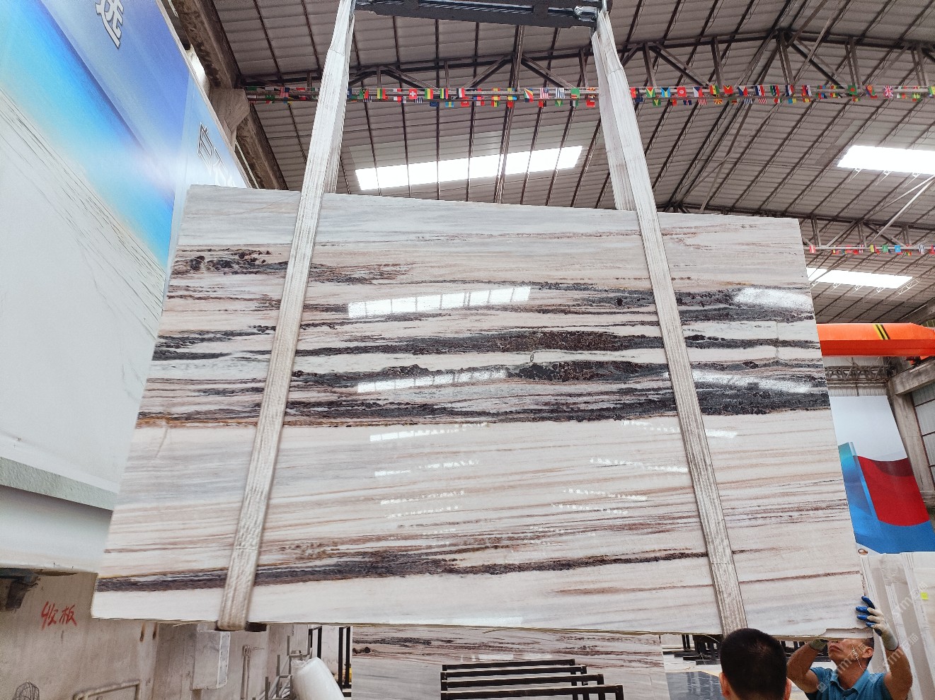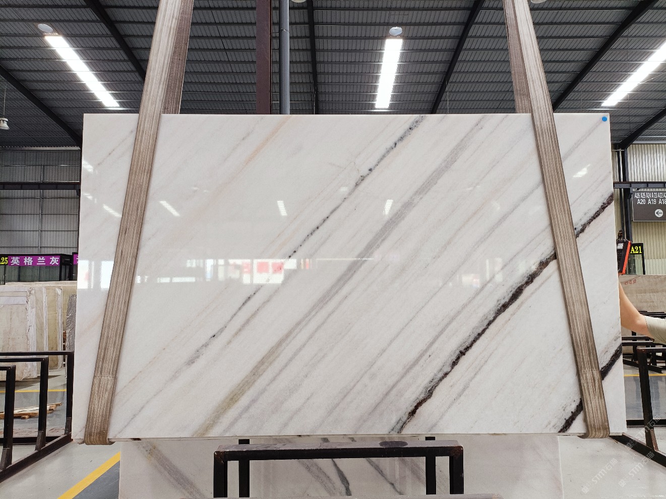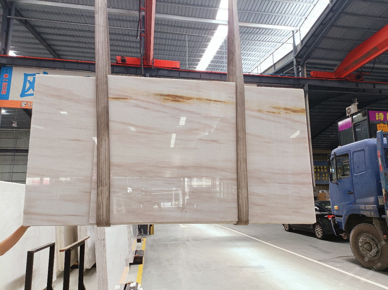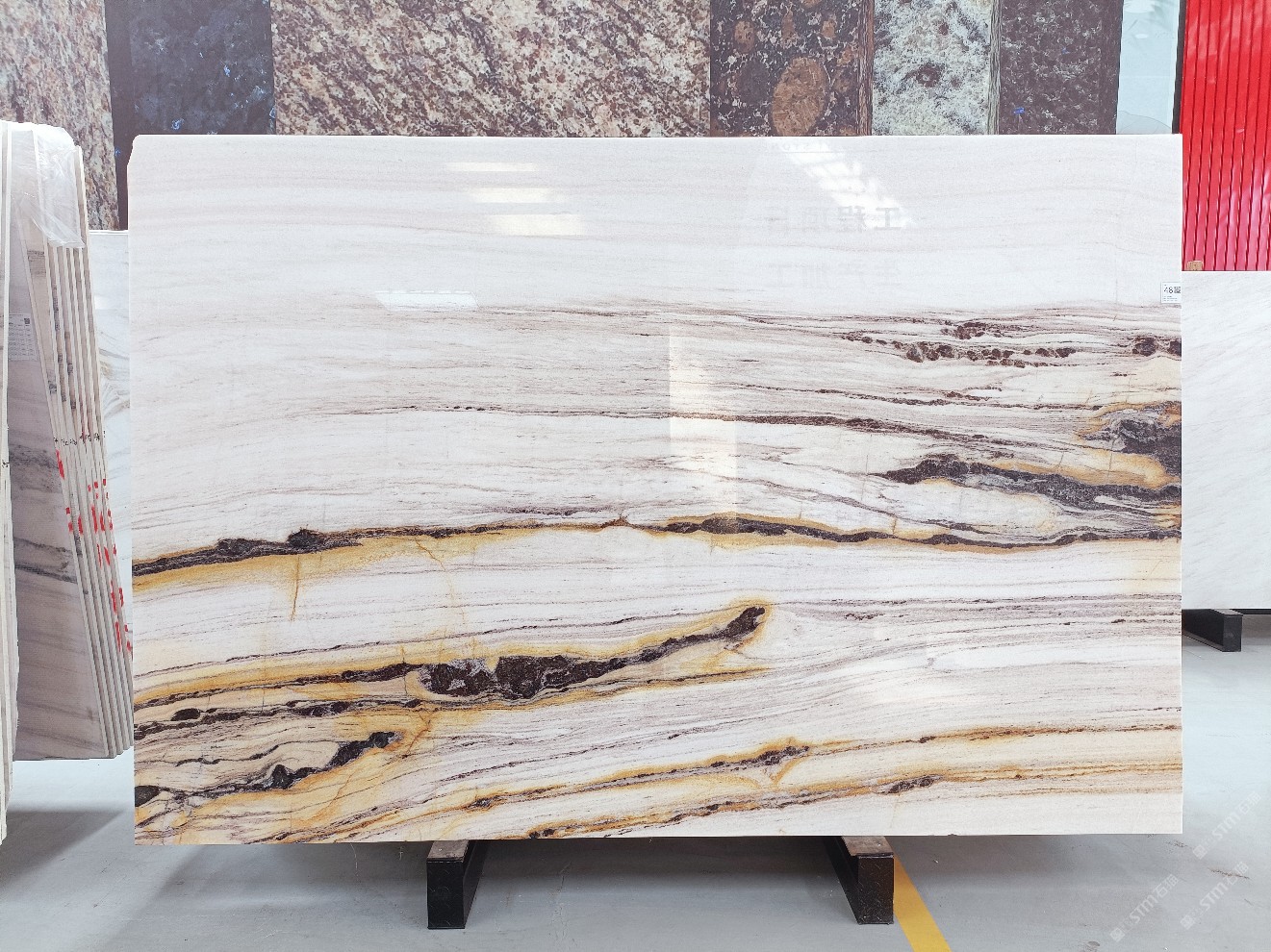 云浮站石材公司開發(fā)的歐亞白獨(dú)立礦山,專屬道路,礦口面積約 725 畝,證件齊全。今年礦口開采出直紋,亂紋優(yōu)質(zhì)大板材料,礦山采用單面墻平臺(tái)開采方式,10臺(tái)繩鋸、5臺(tái)鏟車、5臺(tái)勾機(jī)、一臺(tái) 30 噸叉車,共有職工40人,已有兩個(gè)開采平臺(tái)。礦山已開采多年,道路、設(shè)施都已成熟,現(xiàn)產(chǎn)能穩(wěn)定增長。品質(zhì)非常穩(wěn)定,一石兩面分別可以產(chǎn)出直紋和亂紋兩種紋路,材質(zhì)為細(xì)膩的玉質(zhì)品體。
