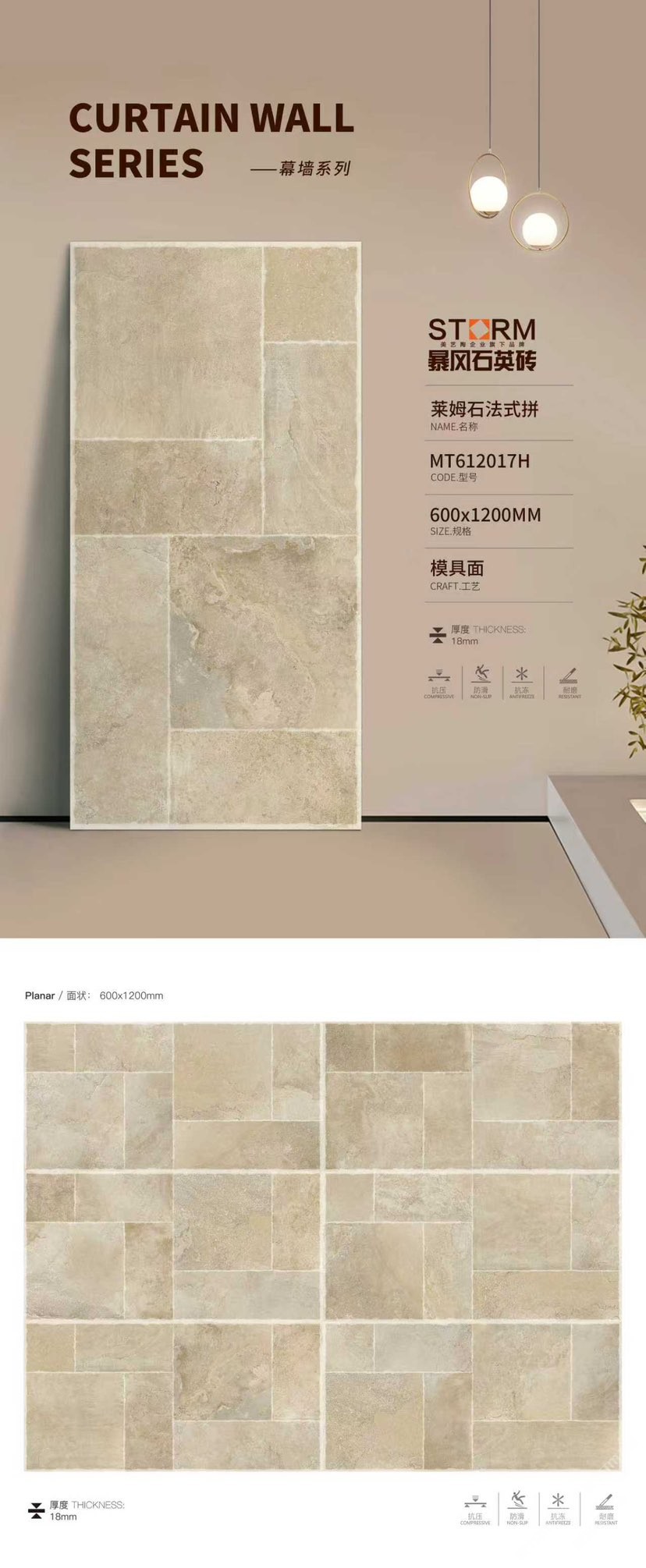 暴風(fēng)石英磚是美藝陶(福建)高新建材有限公司旗下系列產(chǎn)品,專注研發(fā)和生產(chǎn)運用于戶外的石英磚產(chǎn)品,為商業(yè)建筑和高端住宅提供優(yōu)質(zhì)建材產(chǎn)品與應(yīng)用解決方案 。暴風(fēng)石英磚精準定位為戶外用磚主營厚磚系列產(chǎn)品(1.2-3CM),并與2021榮獲“全國工程建設(shè)品牌”。\