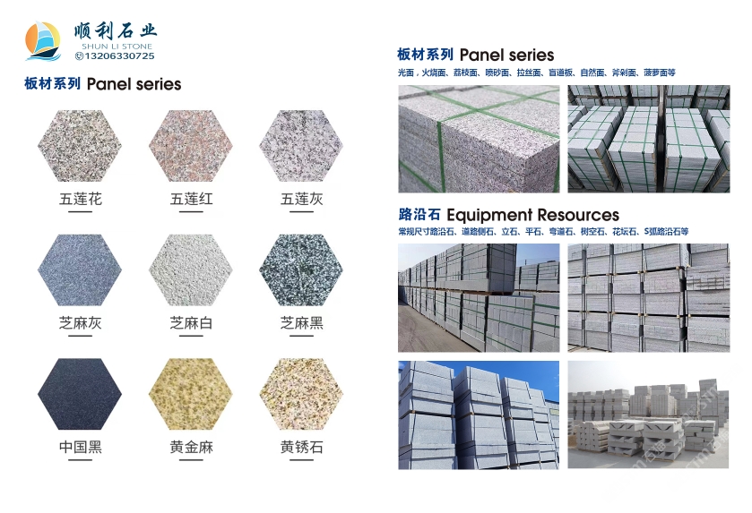產(chǎn)品有五蓮紅、五蓮花、五蓮灰、芝麻灰、黃金麻、芝麻白、芝麻灰、山東白麻、櫻花紅、珍珠花等多種花崗巖板材,臺階石、路沿石、 S 型路沿石,異型路沿石,弧形彎道石,蘑菇石、火燒板、機刨板、等各種異形石材。多年來,產(chǎn)品銷往全國各地。五蓮花崗巖板材被評為省優(yōu)、部優(yōu)產(chǎn)品。并得到了廣大用戶的認可及社會各界的好評。
