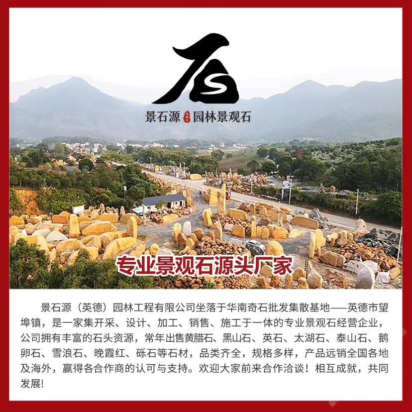 公司位于華南地區(qū)英石之鄉(xiāng)-清遠(yuǎn)英德市。本地盛產(chǎn)各種石材、擁有多年的石材銷售經(jīng)驗(yàn),自有實(shí)體石場(chǎng)。經(jīng)營(yíng)黃蠟石、英德石、中國(guó)黑、太湖石、青花石、黑山石、鵝卵石、青花石、礫石、泰山石、雪浪石、晚霞紅等等多種石材原料。刻字石、加工石、樹圍、景墻、地鋪、石槽石臺(tái)、水缽、石盆等多種異形加工產(chǎn)品