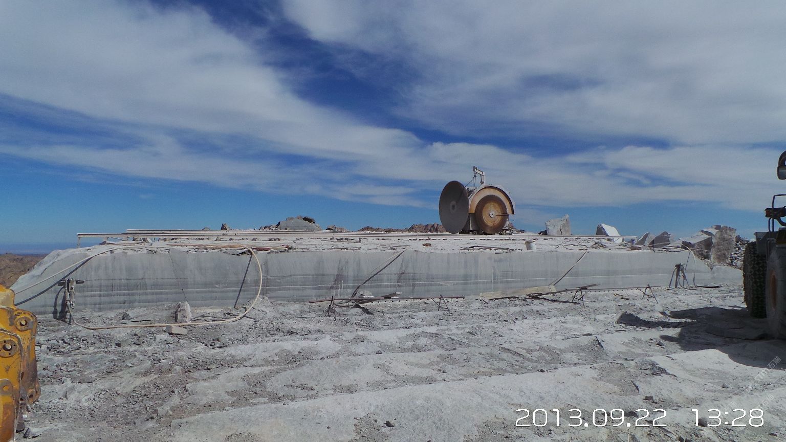 新疆煒通石材工貿(mào)有限責(zé)任公司成立于2007年,是一家集礦山開采、板材加工為一體的石材公司。公司擁有的奧莫爾塔格礦山位于哈密市東北方向,直線距離約160千米,礦區(qū)面積1.25平方千米,資源儲(chǔ)量約800萬(wàn)立方米。礦山擁有一批優(yōu)秀的管理人員、技術(shù)精湛的開采隊(duì)伍和先進(jìn)的機(jī)械設(shè)備,現(xiàn)有柴油發(fā)電機(jī)組8臺(tái),濕式切石機(jī)6臺(tái),滿負(fù)荷生產(chǎn)規(guī)劃為每年5萬(wàn)立方米。