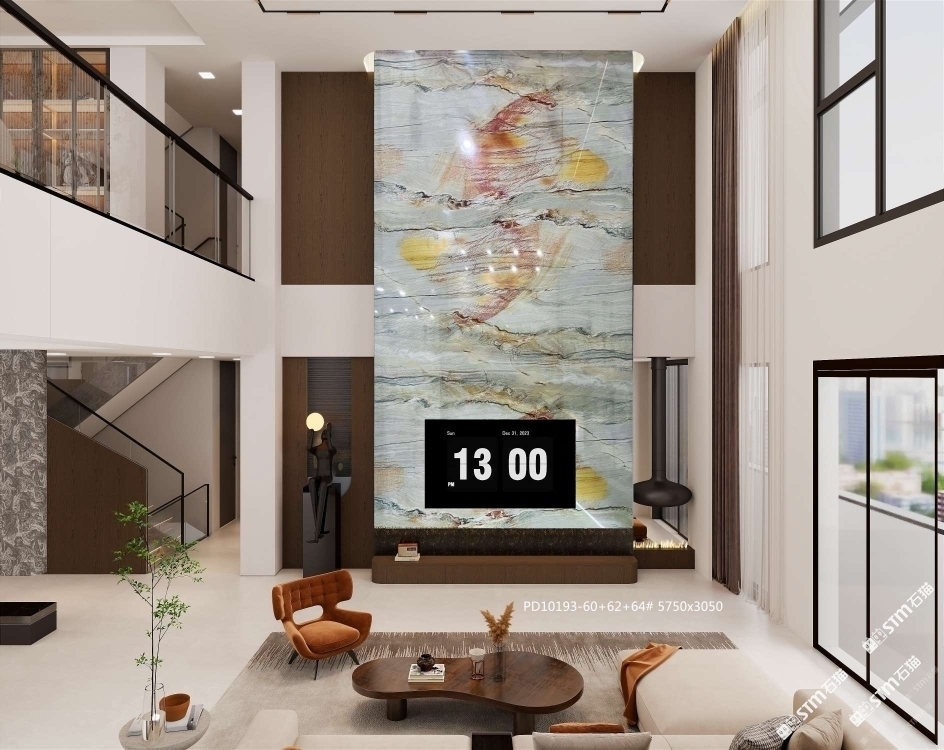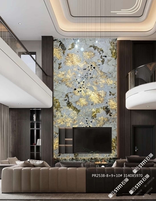 品一奢石館|奢石|天然山水畫|別墅背景墻|孔雀開屏