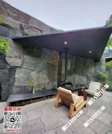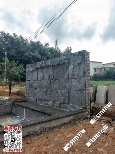 首頁 > 案例 > 芝麻黑自然面背景墻流水石水景石材流水幕墻石皮背景墻