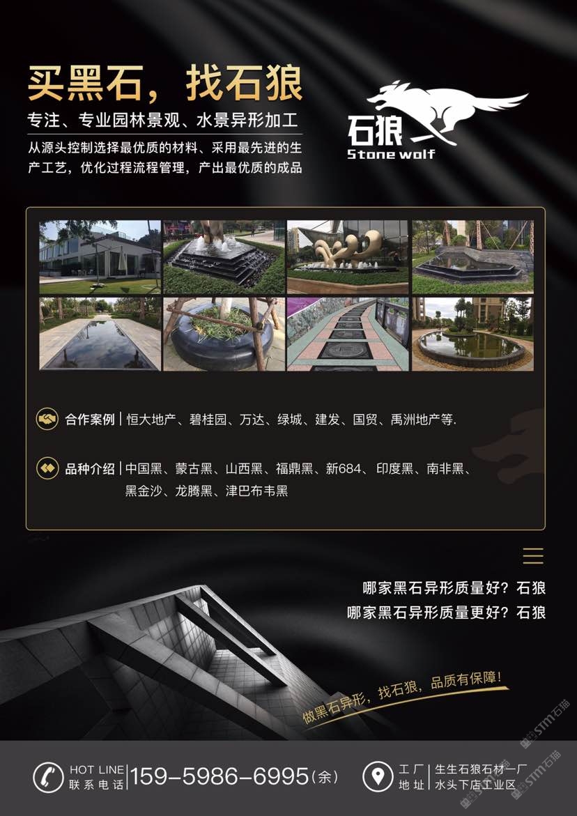 發(fā)布信息: 石狼@黑石 高端黑石異形加工品牌創(chuàng)立者 成功合作:恒大地產(chǎn)、碧桂園、萬達(dá)、綠城、建發(fā)、國(guó)貿(mào)、禹洲地產(chǎn)、汕頭大學(xué)、萬豪酒店等等 ??:15959866995余