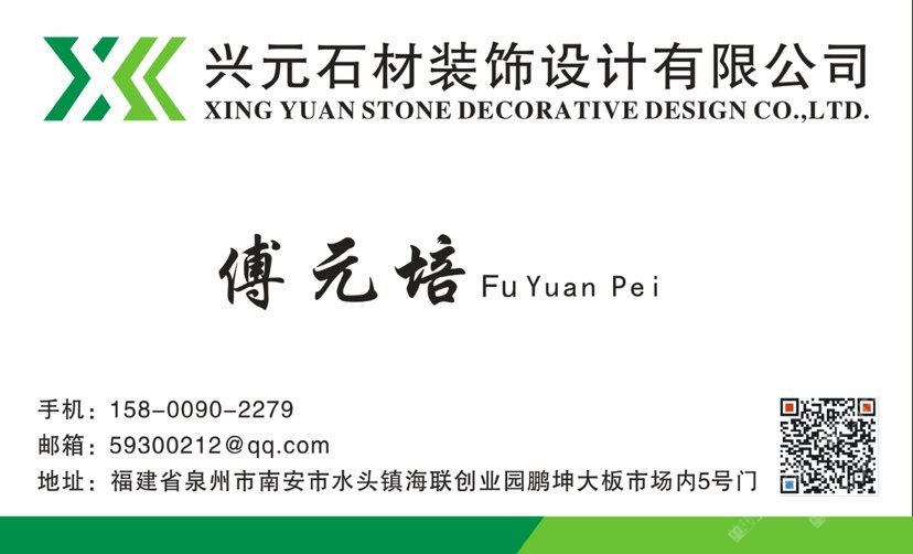 興元石材裝飾設(shè)計 聯(lián)系人:傅    158****2279 查看 手機(jī)號碼:無 主營范圍: 更多、其他、 企業(yè)地址:福建泉州水頭鎮(zhèn)勞光村傅厝路口50號