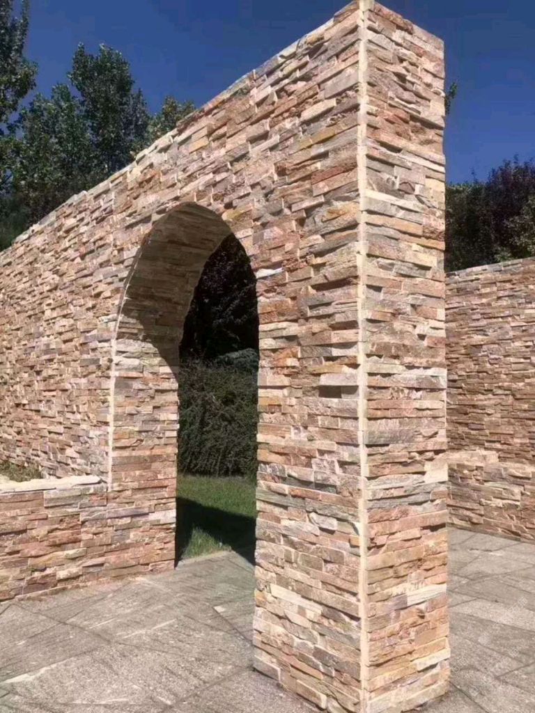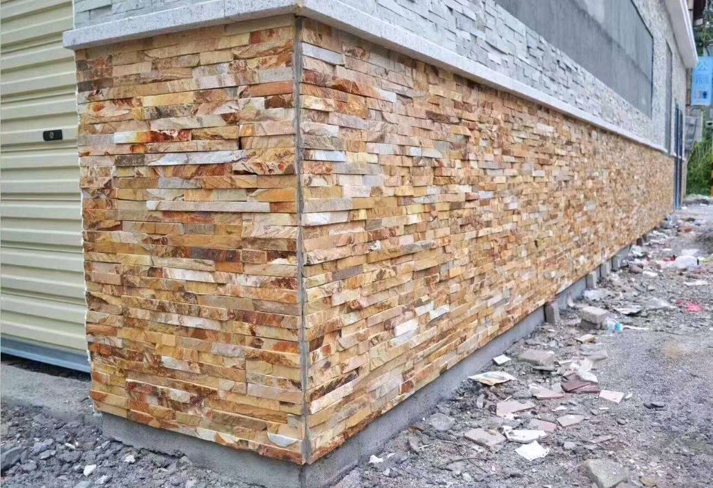 黃木紋平板加毛邊文化石,適合用有別墅外墻,背景墻。公園外墻。