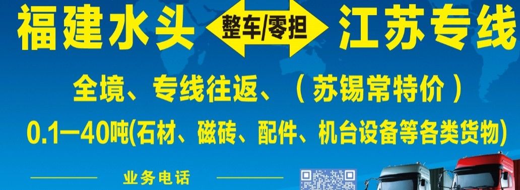 發(fā)布信息: 福建泉州水頭—江蘇全境,往返專(zhuān)線(xiàn)。 (蘇錫常特價(jià)?。?24小時(shí)在線(xiàn)接單 零擔(dān)~整車(chē),0.1噸—40噸。 承接各類(lèi)石材,瓷磚,機(jī)械等各類(lèi)運(yùn)輸。 專(zhuān)注運(yùn)輸,用心服務(wù)??砷_(kāi)發(fā)票。 江蘇專(zhuān)線(xiàn)15860361020。(微信同步)