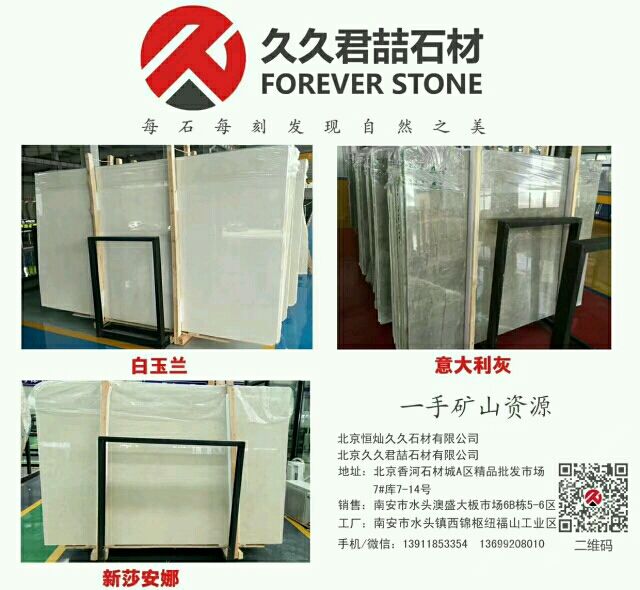 北京恒燦久久石材有限公司 聯(lián)系人:黃女士    ?139****3354 查看 手機(jī)號碼:無 主營范圍: 大板批發(fā)、荒料、大理石加工、異型加工、礦山、 企業(yè)地址:河北廊坊香河縣香河石材城A區(qū)0508