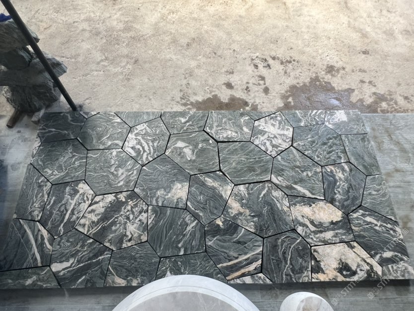 九龍玉石桌椅,地鋪碎拼,茶臺