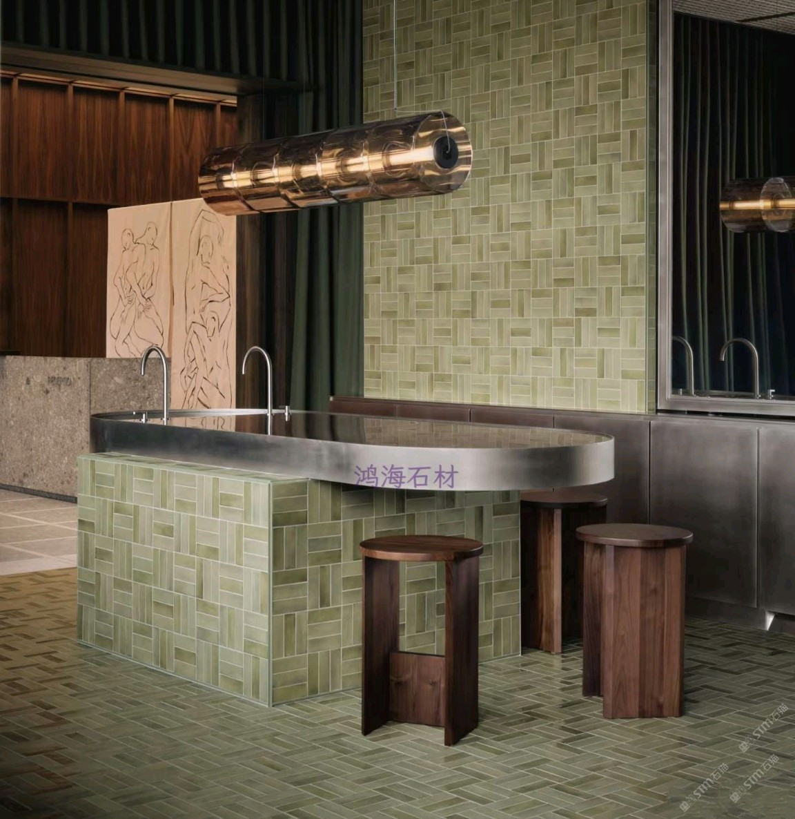 發(fā)布信息: 鴻海石材為皮膚科診所打造差異化空間,突破傳統(tǒng)醫(yī)療場所冰冷刻板的局限。設計融入金屬格柵與無機環(huán)氧水磨石等材質(zhì)形成呼應,滑動穿孔面板實現(xiàn)醫(yī)療與咖啡休閑區(qū)的靈活切換,深綠窗簾、紅色絲絨座椅與綠色水磨石交錯鋪貼,營造出堪比高端水療中心的溫潤療愈氛圍。