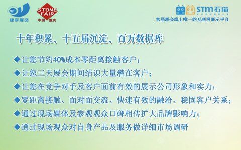 發(fā)布信息: 【2018第九屆重慶石材展5月在渝舉辦!】 主辦:重慶市工商聯(lián)(總商會)建材商會、重慶建宇展覽有限公司 時間:2018年5月10-12日 地點(diǎn):重慶國際會議展覽中心 【往屆回顧】 上屆展會有來自國內(nèi)外近600余家知名企業(yè)和品牌參展,展示面積25000平方米,共接待了包括開發(fā)商、建筑商、承包商、裝飾設(shè)計、代理商、經(jīng)銷商等專業(yè)人士近3萬人次,被業(yè)界譽(yù)為中國西部地區(qū)專業(yè)性強(qiáng),參展效果的行業(yè)盛會之一!同時也得到了重慶市政府部門及行業(yè)主管部門的大力支持和指導(dǎo)。 【參展范圍】 石材類:大理石/花崗石/砂巖荒料、石灰石、板巖等 板材類:天然石材/大理石/花崗石板材、環(huán)境石材 人造石類:人造石英石、人造文化石、人造石板材 石雕制品類:石雕、石刻制品、園林風(fēng)景石、假山石等 環(huán)境裝飾類:卵石、仿古石、景觀石、磨菇石等 石材機(jī)械及加工設(shè)備:金剛石串珠鋸、研磨拋光設(shè)備、水射流切割機(jī)等 養(yǎng)護(hù)材料及設(shè)備:石材養(yǎng)護(hù)用品及設(shè)備、各類石材清洗、研磨劑、石材拋光劑等 【為什么選擇-建宇·建博會—十年積累、十五屆沉淀、百萬數(shù)據(jù)庫】 ?節(jié)約40%成本零距離接觸客戶 ?三天展會期間結(jié)識大量潛在客戶 ?在對手及客戶面前展示公司形象和實(shí)力 ?快速有效的融洽、穩(wěn)固客戶關(guān)系 ?通過現(xiàn)場媒體及觀眾口碑相傳擴(kuò)大品牌影響力 ?通過現(xiàn)場觀眾對產(chǎn)品及服務(wù)做詳細(xì)市場調(diào)研 【聯(lián)系方式】 單 位: 重慶建宇展覽有限公司 電 話: 023-86376000/62925058 傳 真: 023-86376218 e-mail: jianyuzl@163.com 地 址: 重慶市南岸區(qū)南坪西路3號商業(yè)大樓29-4