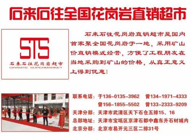 天津市石來(lái)石往花崗巖超市寶坻總部 聯(lián)系人:曾貴德    156****5502 查看 手機(jī)號(hào)碼:無(wú) 主營(yíng)范圍: 大板批發(fā)、荒料、花崗巖加工、礦山、石材交易市場(chǎng)、 企業(yè)地址:天津?qū)氎鎱^(qū)九園工業(yè)園中鑫東升石材城內(nèi)14號(hào)