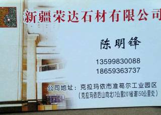 新疆托里縣天盛礦業(yè)有限公司主營(yíng)產(chǎn)品:印度紅(新礦),天山翡翠,雪花青,鉆石金麻,菊花黃企業(yè)地址:新疆克拉瑪依克拉瑪依后上托里準(zhǔn)噶爾石材工業(yè)區(qū)