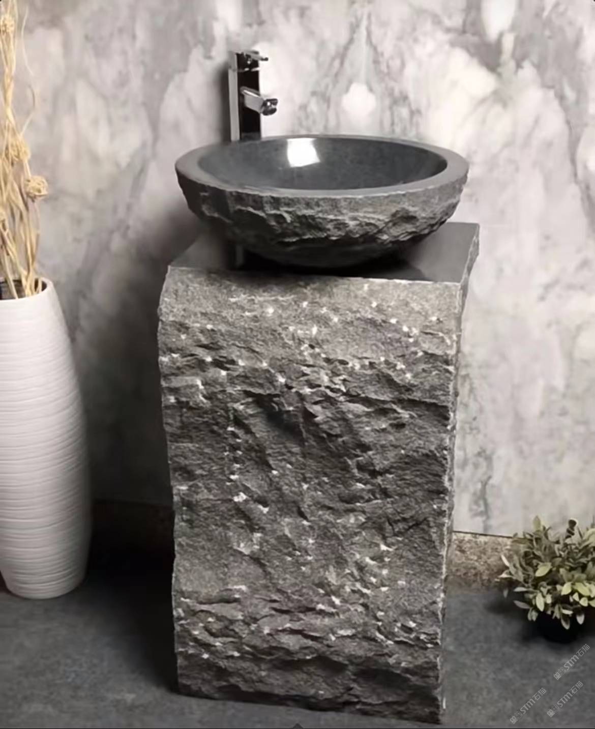 描述:石材立柱盆,具有不同形狀和尺寸的獨(dú)立元素,與衛(wèi)浴產(chǎn)品結(jié)合在一起。
